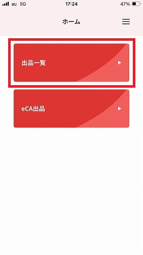 2. ホーム画面で[出品一覧]を選択します。